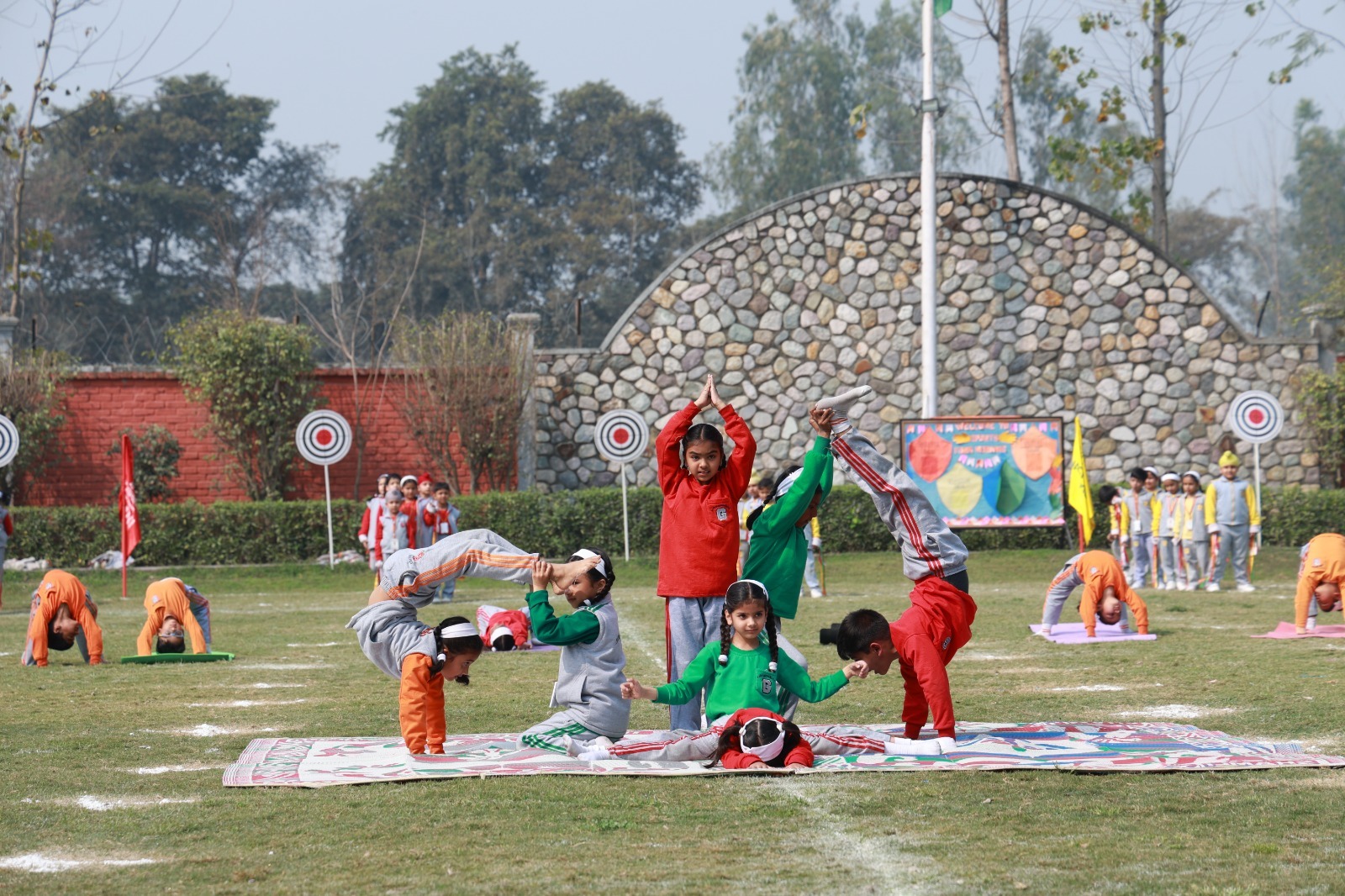 कार्यक्रम का एक विशेष आकर्षण प्री-नर्सरी के बच्चों की मनमोहक भागीदारी रही, जिनकी मासूमियत और उत्साह ने सभी का दिल जीत लिया। योग ड्रिल भी अत्यंत एकाग्रता और सौम्यता के साथ प्रस्तुत की गई, जिसने उपस्थित सभी लोगों को प्रभावित और गौरवान्वित किया।